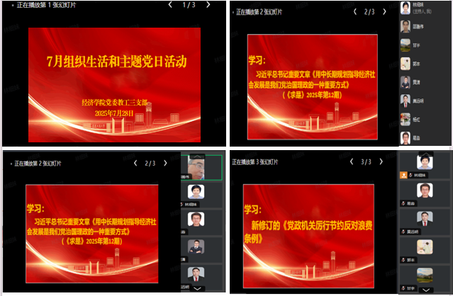 7月28日,太阳成集团tyc539党委教工第三党支部通过企业微信会议在线开展7月组织生活。