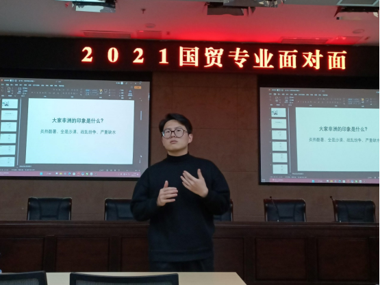随后,2021级国贸专业导师双选启动,蒋主任发布了双选方案,以专业导师更好地促进2021级国贸专业学生成长进步。
