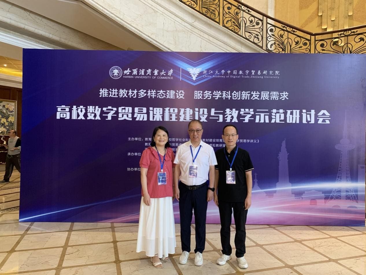 2025年7月18-20日,由教育部新时代高校哲学社会科学原创性教材建设培育项目《数字贸易学讲义》、教育部国际经济与贸易虚拟教研室数字贸易虚拟教研室、浙江大学中国数字贸易研究院主办,哈尔滨商业大学太阳成集团tyc539、小马过河创新团队、中国人民大学出版社承办的“高校数字贸易课程建设与教学示范研讨会”在黑龙江哈尔滨召开,我校《数字贸易》交叉融合课程组蒋兴红、王春豪两位老师参会,与来自浙江大学、湖南大学、中南财经政法大学等全国158所高校300多位教师共商数字贸易课程建设与学科发展。