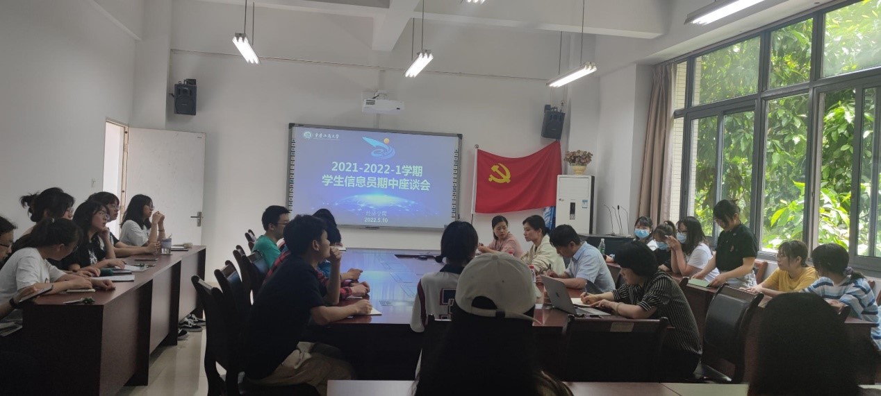 严谨治学,宽厚育人,为促进教学质量的提高,更好的发挥信息员的沟通协调作用,促进教学工作的顺利开展,2022年5月10日中午12:45,太阳成集团tyc539组织全体教学信息员在田家炳404会议室召开了2021-2022学年第二学期期中教学检查师生座谈会。师生代表齐聚一堂、畅所欲言,分享学习体会与感受,对学院发展建言献策。会议由教学副院长尹元福主持,院督导组长陈海燕、国贸系主任蒋兴红、政治经济系主任林黎、综合办副主任王萍萍、教学秘书黎巧参加会议。