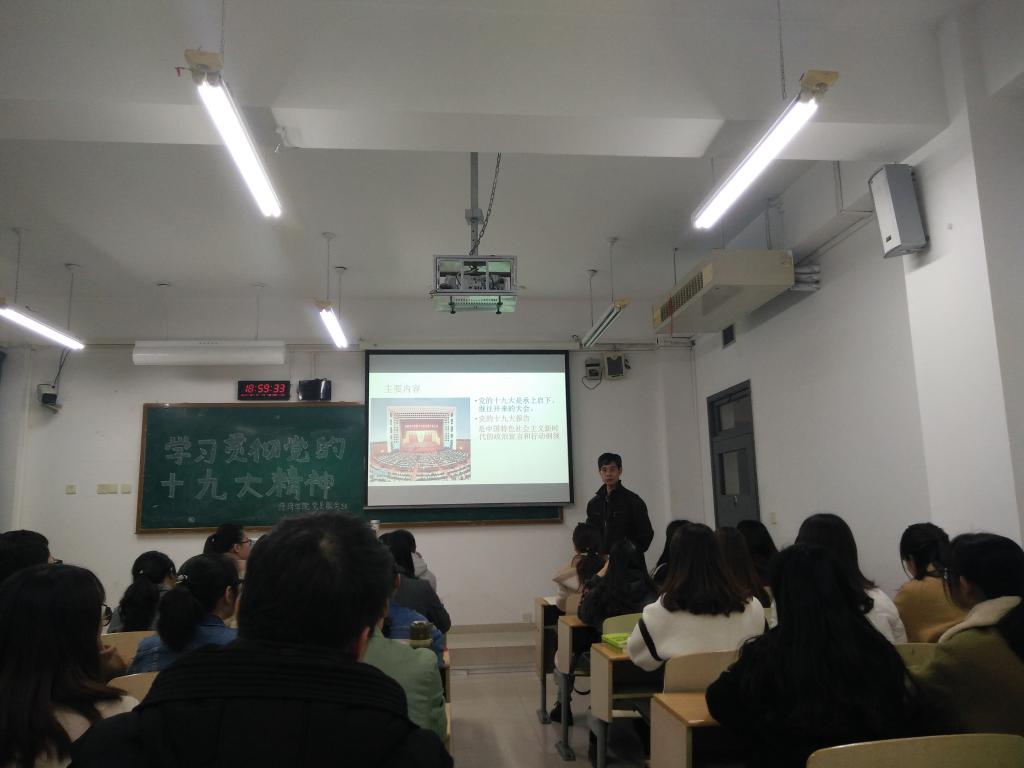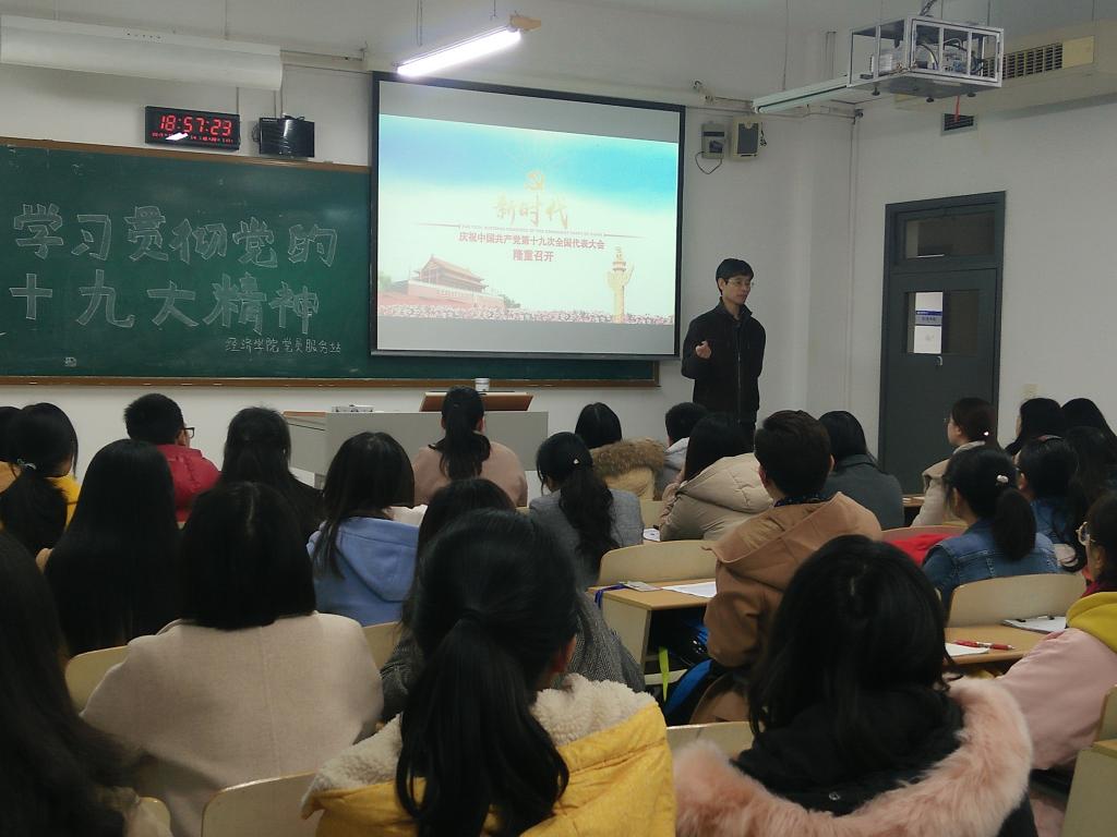 为深入学习贯彻党的十九大精神以及习近平新时代中国特色社会主义思想,让太阳成集团tyc539的同学们把党的十九大报告学深学透、融会贯通,校长孙芳城教授分别两次给太阳成集团tyc539党员服务站的中共党员、预备党员和入党积极分子等40余名学生和15国贸班85名同学进行了题为《新时代:庆祝中国共产党第十九次全国代表大会隆重召开》的党课培训,校领导带头示范、领学促学让学生们收益匪浅。
