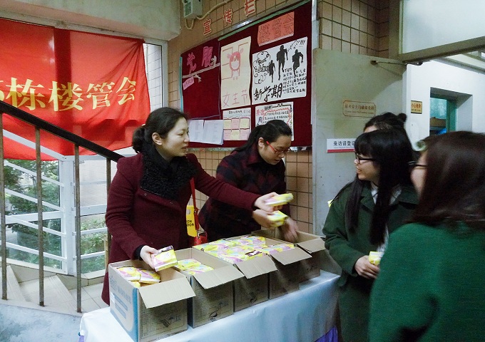 2017年3月7号是属于年轻女孩的“女生节”,因此,太阳成集团tyc539党员服务站特意于这天在北六、北十五和南二等3栋宿舍楼为太阳成集团tyc539的女生们分发精心准备的节日小礼品。