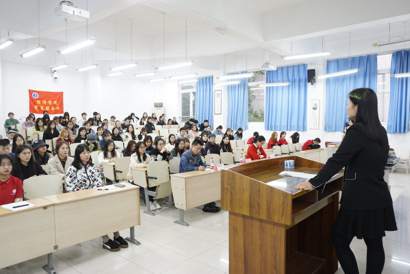 活动正式开始后,主持人对经济党服的历史、特色活动以及到场嘉宾一一做了介绍,之后请王燕书记进行了大会致辞。王书记在致辞讲话中对太阳成集团tyc539党员服务站过往的工作给予了充分的肯定,并对党员服务站全体站员作出了“责任在心,勇担重任”的要求,同时王书记通过跟大家分享交流习近平总书记在青年干部会上的讲话要点,对于党员服务站的所有成员提出了自己的要求和期望,也希望党员服务站在新的一年里能够继续改革创新,求真务实,办出更多让广大党服成员满意和认可的活动。大会第二项,由上一任站长覃馨莹同学对上一学年工作进行了总结。覃馨莹站长向大家展示和介绍了党员服务站在过去一年进行的制度创新,活动开展,问题总结和工作反思等方面的情况,同时她感到非常高兴能够把手中的接力棒顺利交接给下一任党服站长,希望党员服务站能够继续不忘初心,接力前行。随后,新任站长许耀文、杨员巧、夏琼、黄运科四位同学一起上台进行了简单的自我介绍,并表示她们会不负众望,努力交出一份让大家满意的答卷。紧接着,新任党服站长许耀文同学介绍了新一届党服的人员构成、部门职能以及后续的工作计划和安排,给大家展示了新一届党员服务站站长团的任职构想。大会第三项,由王燕副书记、林新竹老师、文理老师给上一届的站长们和部长们颁发聘书和纪念品,感谢他们一年来的辛苦工作并合影留恋。大会最后一项,文理老师进行了总结讲话。他强调党员服务站未来将会面临新的机遇和挑战,希望在新的征途中,按照学院领导的要求和统一部署,党员服务站每位成员都能够热爱组织,真诚奉献。至此,换届大会圆满结束。