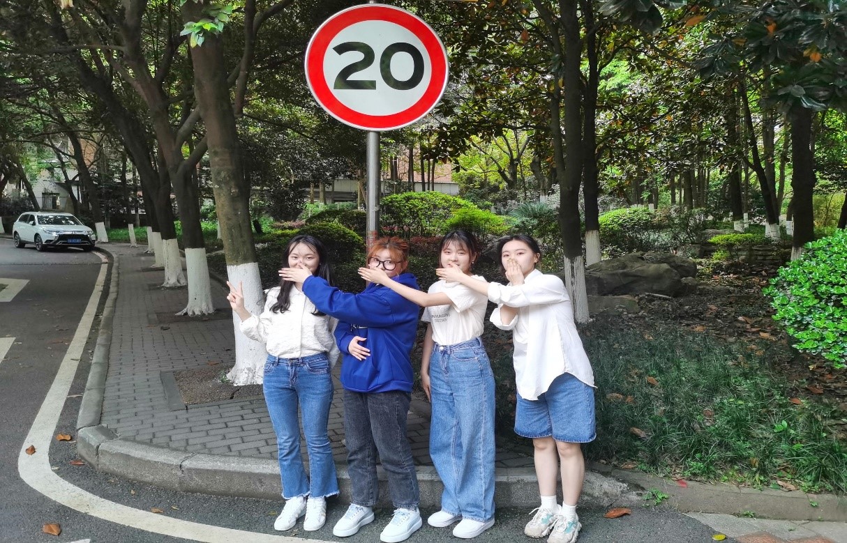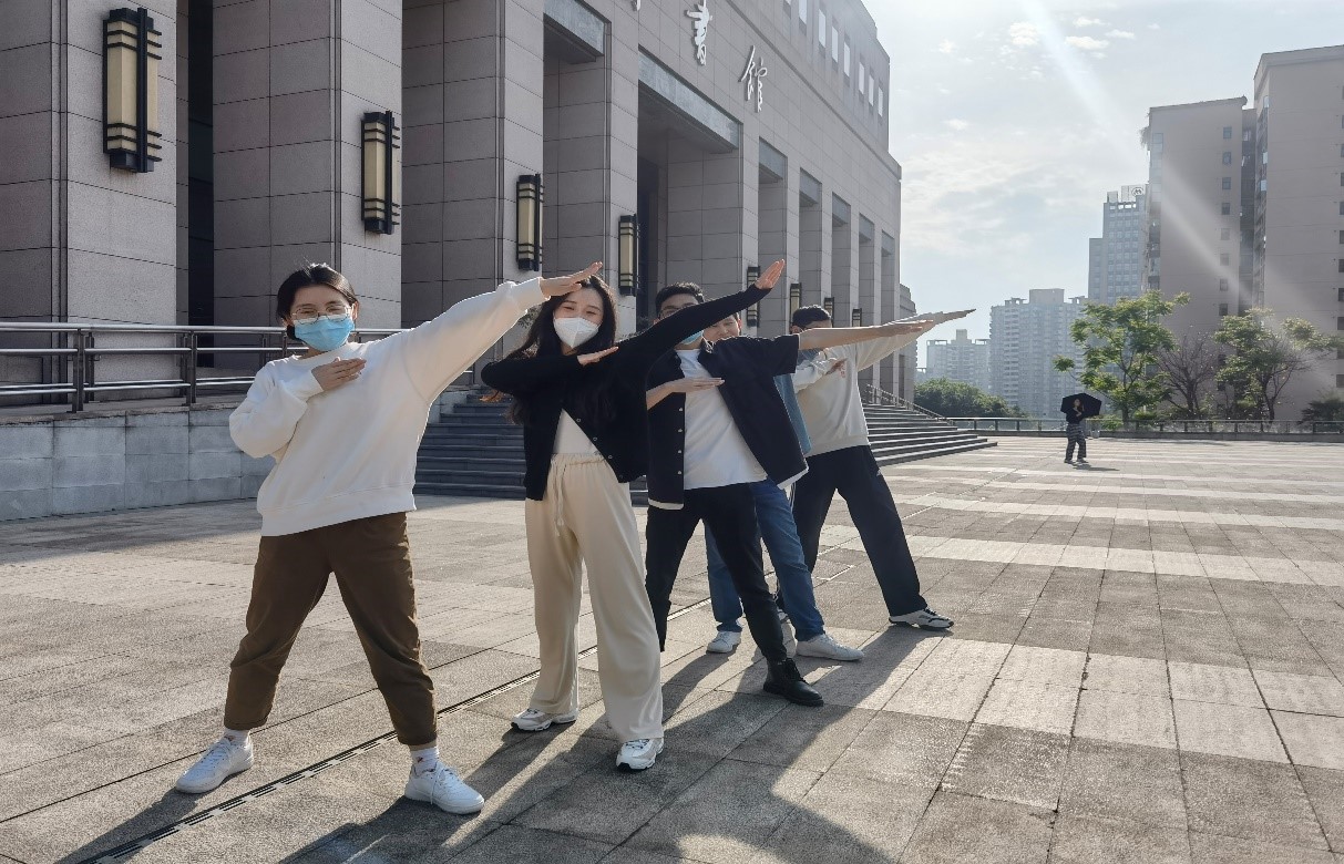 4月8日上午8:00活动正式开始,各小组队长分别来到指定工作人员处领取任务照片。为符合学校疫情防控要求,各小组不聚集、不扎堆,分散行动,并在规定的时间内打卡照片中的所有地点。本次活动形式新颖,在活动设计层面同时考虑到校外同学的特殊情况,设置校内校外两种不同的活动机制,提高了活动的参与率和站员们的满意度。活动开始后,参赛队伍兵分5路,分别经过了学校的九教、南操、体艺馆、香樟林、翠湖、商智楼、校门口、图书馆、七教、兰园、八教、北操、筱园、北六宿舍、校医务室、新北寝室及厚德楼,并在到达相应地点后模仿任务照片中的姿势进行拍照打卡,在各种有趣搞怪的拍摄动作中,每队的队员们都留下了一段难忘的回忆,在春日的校园内展现出了青春的活力和多彩。