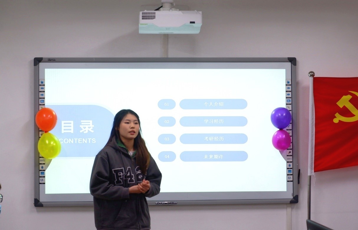 随后,18级财政一班的夏琼从个人经历出发,向大家讲述了她的“逐梦之旅”并提出了三点建议。一是要打开思维,跳出局限。“生活充满了无限可能”,但是机会都更加青睐于有准备的人,只有多关注考研信息、做好多重准备,才能获得最终的胜利。二是要统筹规划,端正心态。“不飞则已,一飞冲天;不鸣则已,一鸣惊人”,除了选择开始的勇气,继续前进的恒心同样重要,切忌半途而废、中途退缩。三是要找准方向,正确选择。考研不是人生的唯一道路,只有选择了适合自己的道路才能够走的更远更长。