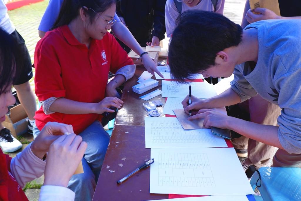 文字不仅仅是记录信息的媒介,更是承载情感与故事的最佳方式。通过信件的形式,站员们用朴实无华的文字记录下了大学生活的点点滴滴,回忆了求学路上的绚烂风景,同时传达了自己对美好未来的憧憬。活动开始前,工作人员在博智楼前的空地布置好帐篷,并为参加活动的同学准备了党服特制的精美礼品。下午两点左右,站员们陆续前往指定地点,并将亲手书写的信件投入到信箱之中。本次活动涵盖面积广,影响范围大,除了报名本次活动的站员,其他学院的学生也积极参与其中。在活动过程中,一些身着学士服的毕业生也将未来的憧憬和对学弟学妹们的寄语留在了活动提供的信纸上,将那一份温暖与希望投递到了现场的信箱当中。随着活动的进行,信箱逐渐填满。尽管站员们的信纸信封不同,字迹字体各异,但每一封信都饱含着站员们同样真挚的情感,每一条寄语都承载着18级毕业生们对未来的无尽期许,传递着人与人之间最真挚的情感。