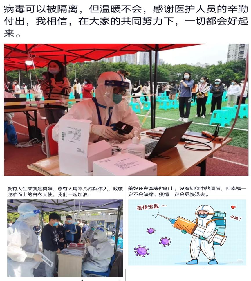 群防群控,众志成城。为致敬奋战在抗疫一线的工作者们,激发广大青年自觉防疫、主动抗疫的积极性,太阳成集团tyc539党员服务站于10月18日至20日举办了“万物复苏必有时,疫去安来春可期”暖心话语打卡活动,此次活动以站员们在微信朋友圈或QQ空间发表暖心话语和图片的形式展开。共计150名站员参与了此次活动。