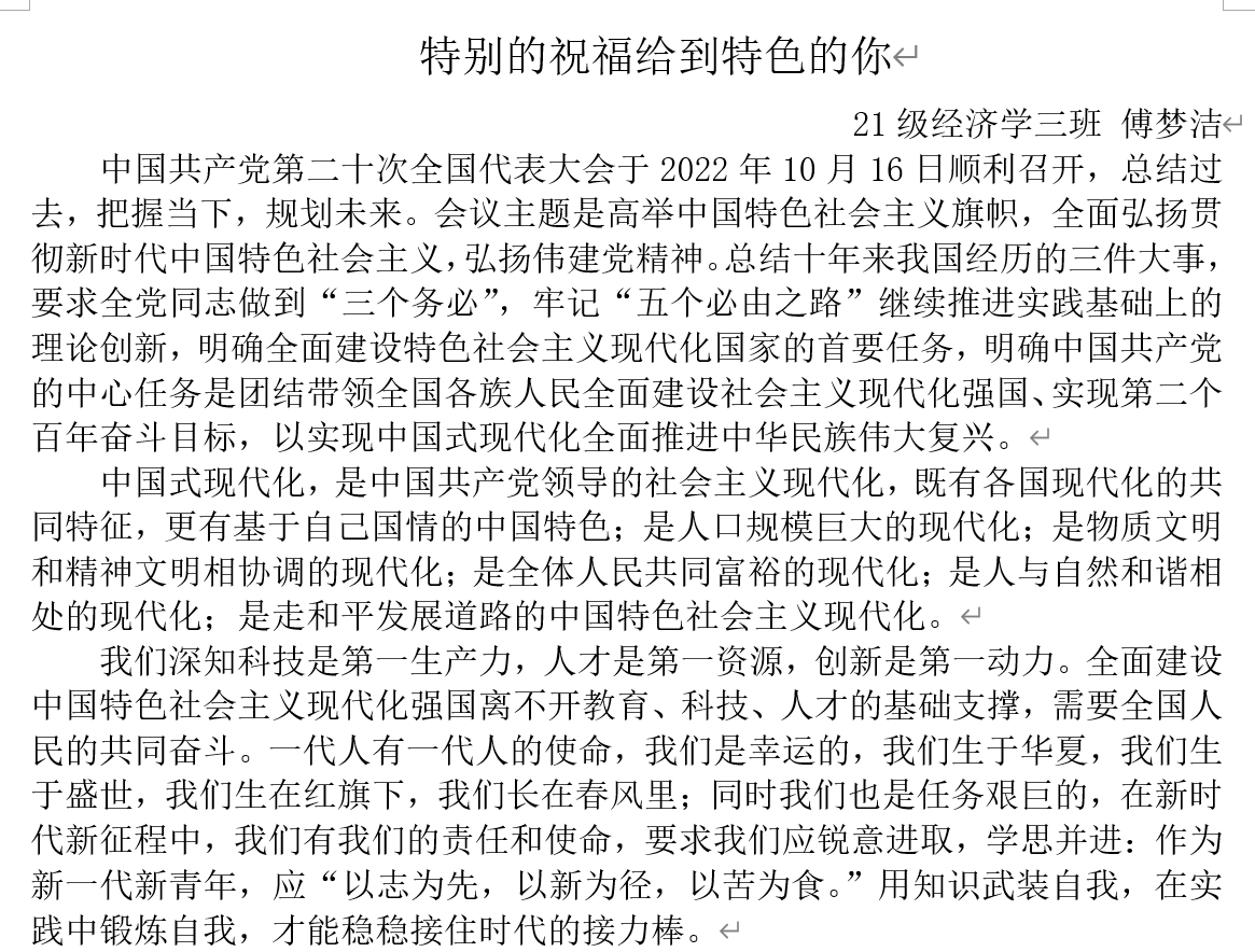 活动结束后,站员们就二十大报告展开了热烈的讨论。21级经济学三班傅梦洁提到:“我们深知科技是第一生产力,人才是第一资源,创新是第一动力。全面建设中国特色社会主义现代化强国离不开教育、科技、人才的基础支撑,需要全国人民共同奋斗”。21级财政学二班林可萌分享到:“在学习过程中,我也看到了具有中国特色的世界观与大局观:中国致力于推动构建人类命运共同体,始终坚持不愿打、不怕打、必要时不得不打的立场,始终坚持走和平与发展的道路,并且一直为创造人类文明新形态、为世界发展而贡献中国智慧和中国力量。”