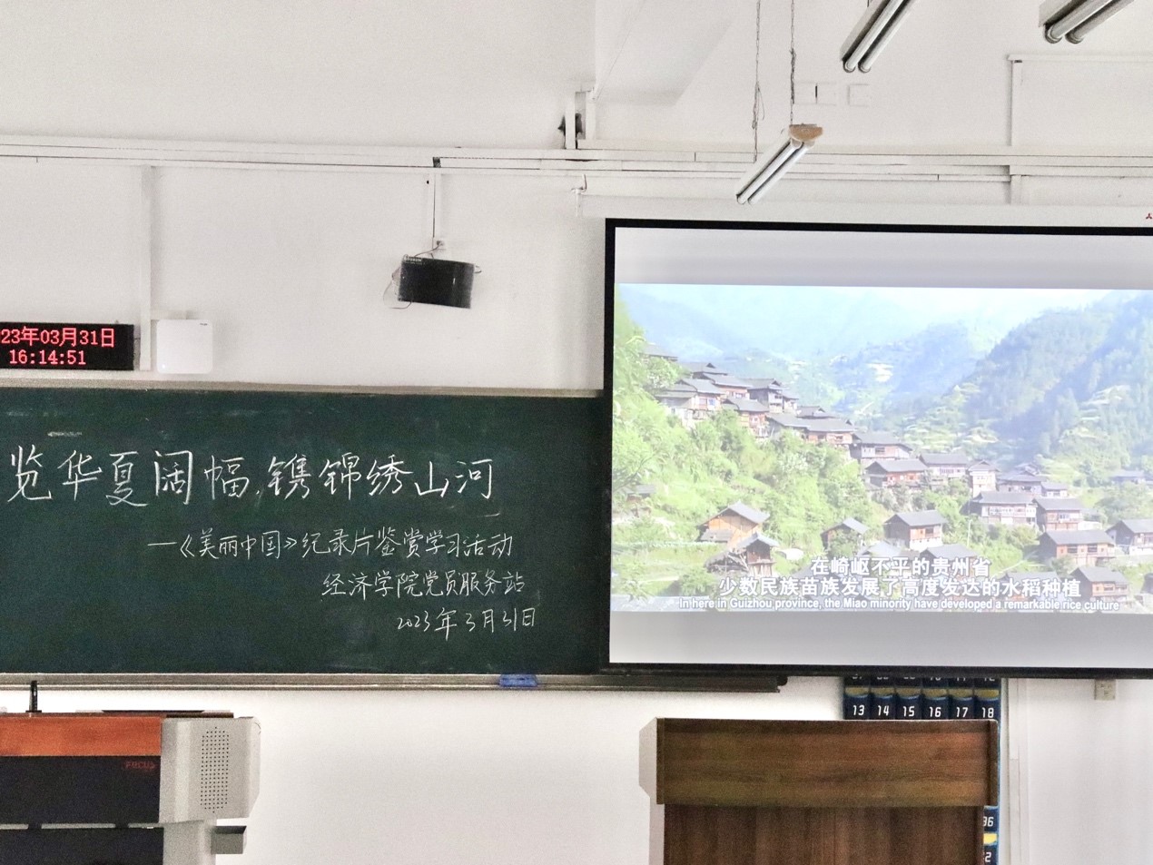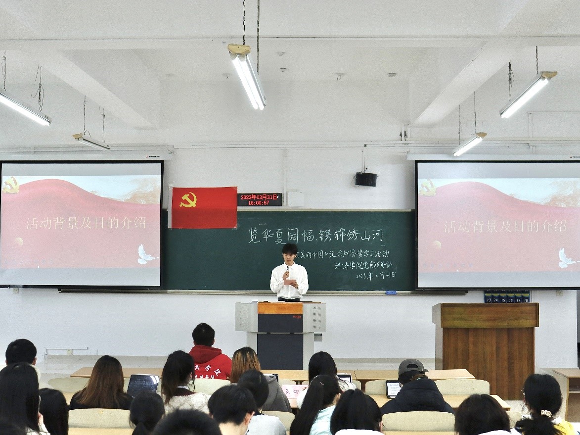 “生态兴则文明兴,生态衰则文明衰。”为了让站员们从不同角度领略祖国自然风光,了解中国特色生态文明建设道路上的生动故事,见证一代代中国人在建设美丽中国路上的努力成果,太阳成集团tyc539党员服务站于3月31日在博智楼07208举办了“览华夏阔幅,镌锦绣山河”——《美丽中国》纪录片鉴赏学习活动。本次活动由21级财政一班杨天瑞同学主持,共50余名站员参与其中。