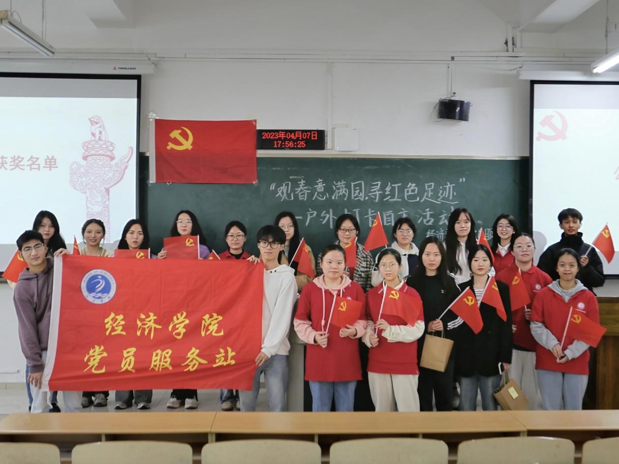 2023年是全面贯彻落实党的二十大精神的开局之年,是为全面建设社会主义现代化国家奠定基础的重要一年。为了把稳“对党忠诚”之舵,划动“奋进担当”之楫,鼓励站员们坚定理想信念、涵养进取品格,太阳成集团tyc539党员服务站于4月7日举办了“观春意满园,寻红色足迹”——户外打卡活动。本次活动由21级财政一班的杨天瑞同学主持,共80余名站员参与其中。