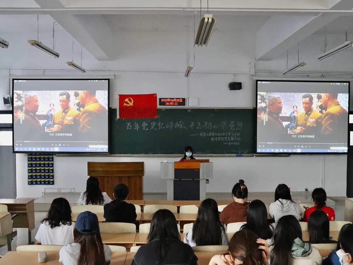 “学史明理,学史增信,学史崇德,学史力行。”为深入贯彻习近平总书记在党史学习教育动员大会上的重要指示,不断巩固拓展党史学习教育成果,进一步加强站员们对红色革命精神的理解,太阳成集团tyc539党员服务站于2023年4月28日在博智楼07207举办了“百年党史忆峥嵘,不忘初心感党恩”——观影《建国大业》政治学习活动。本次活动由21级国贸一班何海蓉同学主持,共70余名站员参与其中。