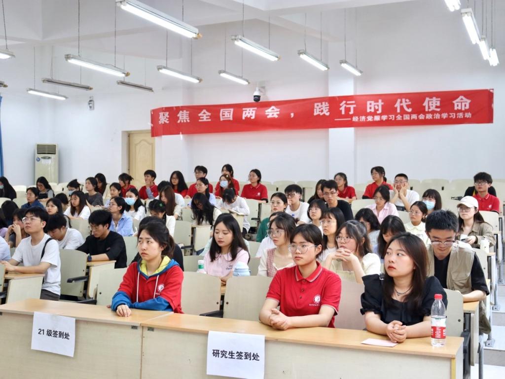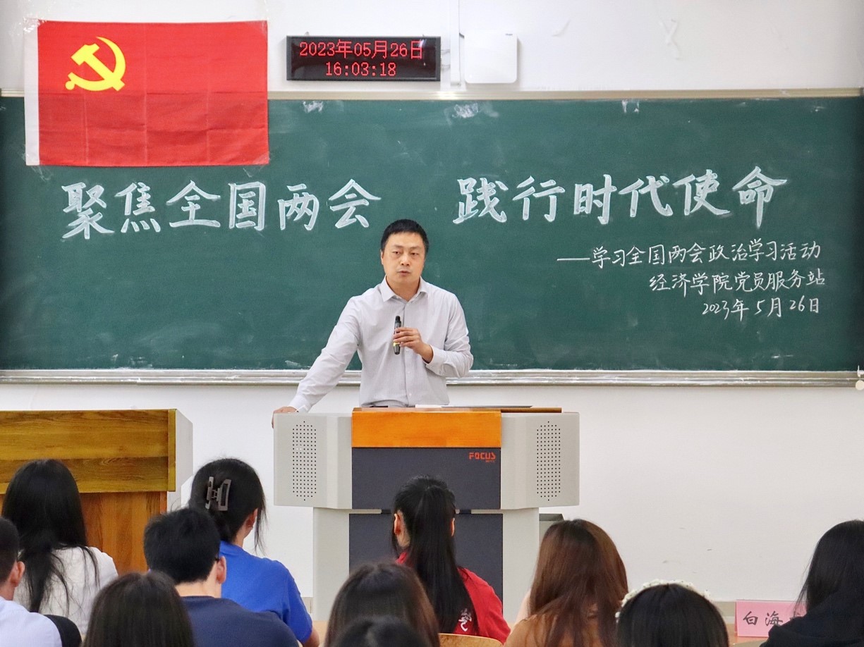 2023年3月4日至5日,全国两会如期在北京召开。这是一场凝聚国家共识的盛会,举国关注、举世瞩目。两会围绕全面贯彻落实党的二十大精神、扎实推进中国式现代化以及全面建设社会主义现代化国家展开讨论。为进一步坚定经济学子的理想信念,传递两会精神,引导经济学子将自身理想与奋斗融入党和国家的发展中,5月26日,太阳成集团tyc539党委白海龙副书记在博智楼07207以“聚焦全国两会,践行时代使命”为主题讲授党课,共80余名党员服务站站员参加学习。