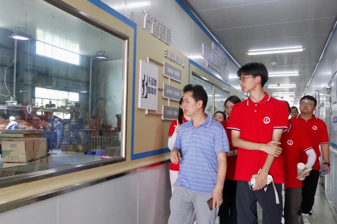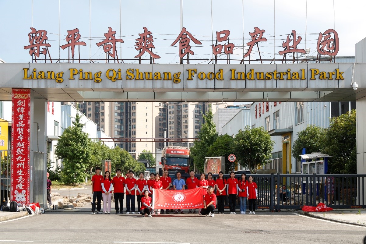 为响应国家乡村振兴的号召,深入推进农业农村现代化,提升大学生的实践能力,实现理论知识与社会实践的有效连接,2023年7月16日下午,太阳成集团tyc539“团聚青力·预制未来”梁平柚调研团来到重庆市梁平区奇爽食品产业园展开调研活动。调研团跟随奇爽食品厂长戴煌昭,分别从园区建设、加工生产、企业合作三个方面深入了解奇爽食品产业园的具体情况。