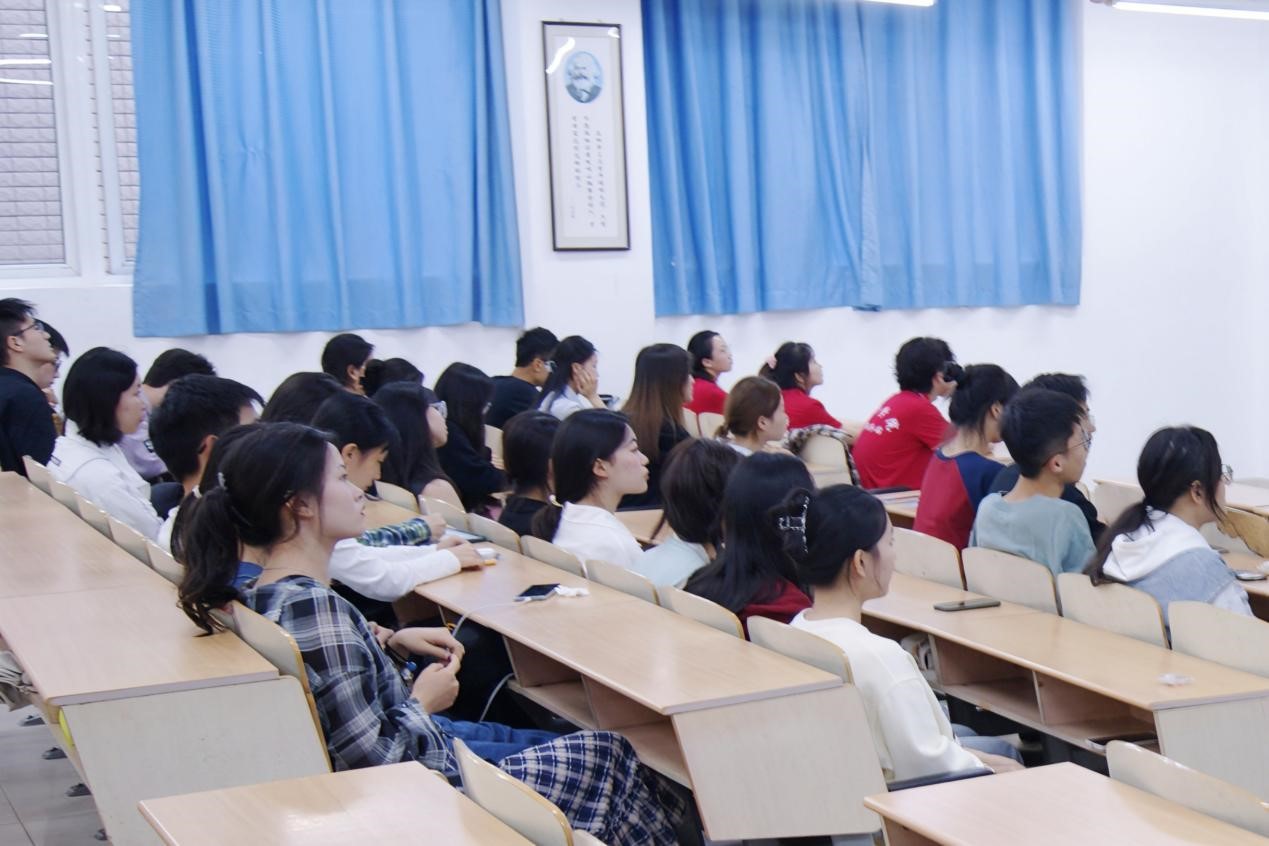 活动前期,参与活动的成员被平均分为八个小组,各小组明确分工、一同学习,共同将学习成果转化为将在活动现场展示的ppt。下午16时, 随着暖场音乐的响起,站员有序落座,主持人简单介绍活动背景与规则后,宣布活动正式开始,各小组代表依次上台分享本小组的学习成果。其中,20贸经三班程聖泥同学另辟蹊径,以习近平新时代中国特色社会主义思想中的经济思想为切入口,向活动观众介绍了新时代经济走向高质量发展的趋势,同时也提到中国的社会主义市场经济体制在当前充满变化的世界背景下对于应对经济风险独特优势。随后,22税收一班肖艳同学提到,习近平新时代中国特色社会主义思想在推进新时代中国特色社会主义伟大实践中展现了强大力量,是新时代党和国家事业发展的根本遵循,对推进中华民族伟大复兴历史进程具有重要意义。各小组分享完毕后,主持人总结致辞,宣布活动圆满结束。
