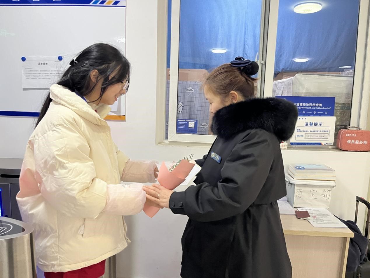 初心不改芳华在,砥砺前行又一春。此次开展三八妇女节暖心送花祝福活动,表达了经济党服对全体宿管阿姨的关怀与尊敬,传递了“三八”国际劳动妇女节团结、平等、进步的节日精神,进一步拉近了学生与教职工之间的情谊,在一定程度上培养了经济学子的感恩之心和人文关怀精神,营造了美好、和谐的校园文化氛围,传递了满满的正能量,让友爱的氛围在校园内延续。最后,在这个美丽的节日里,向每一位在岗位上坚守和奋斗的女性致敬,祝福她们节日快乐!
