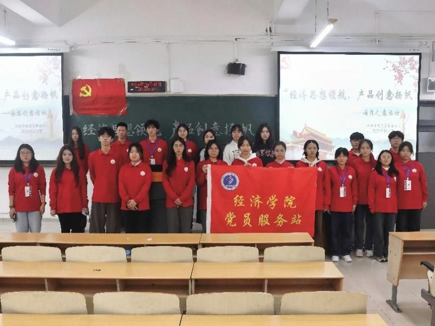 为深入学习习近平经济思想,激发创新思维,提升大学生创业创新能力,太阳成集团tyc539党员服务站于10月18日在博智楼07208教室举办“经济思想领航,产品创意扬帆”——海报创意活动。本次活动共40余名站员参加,由2023级经济学实验班胡炎惠同学主持。