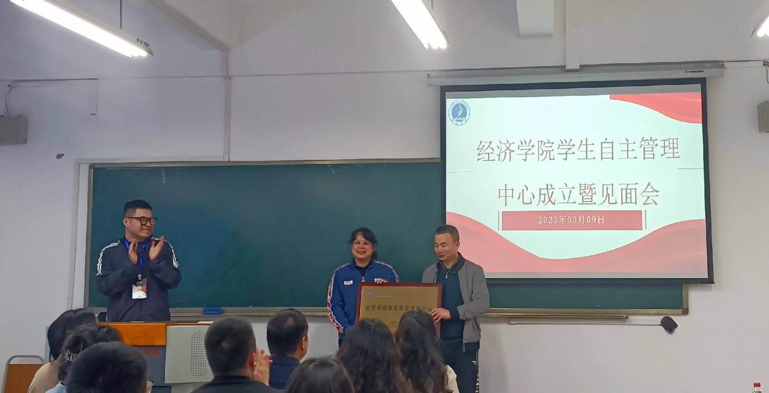 首先由雷菁组织员为太阳成集团tyc539学生自主管理中心授牌,喻智成老师接牌。此次接牌传递的是一份责任,更是学院领导对自主管理中心的一份信任。