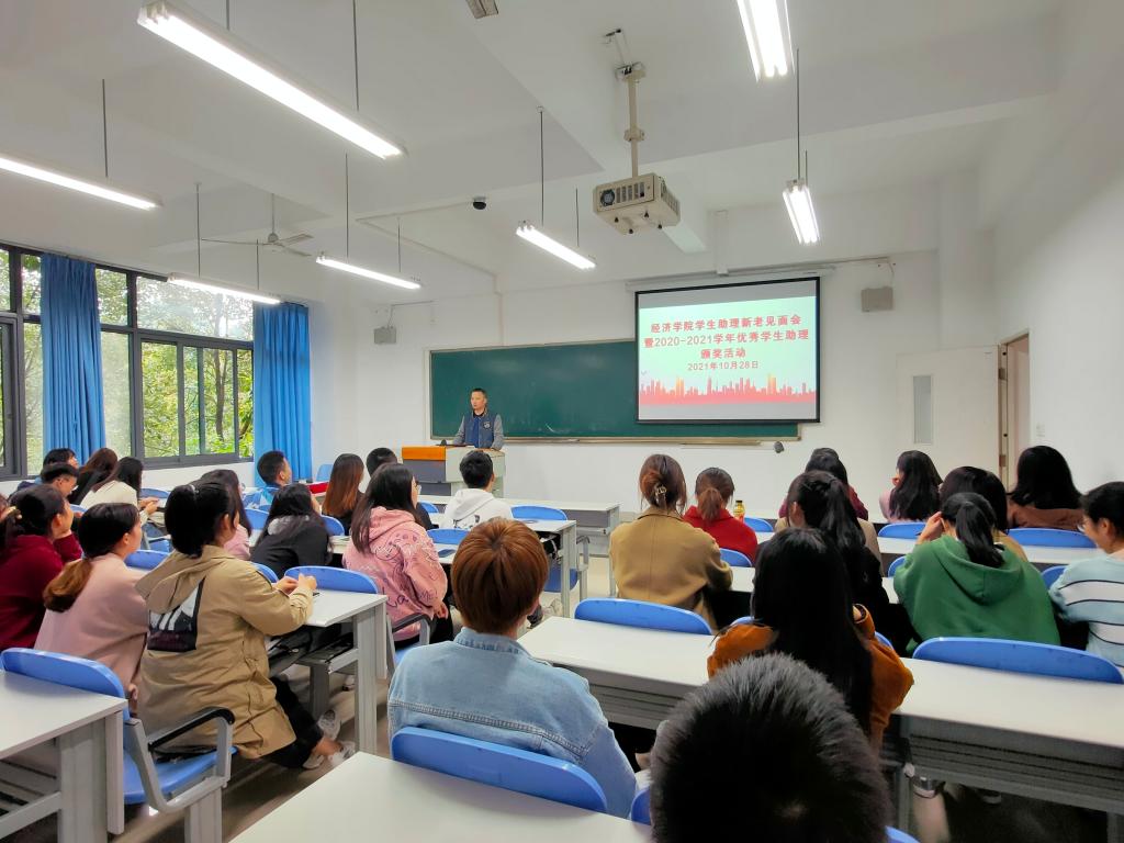 活动第一个环节由新老学生助理进行自我介绍,上台发言的助理们热情洋溢,不仅将自己介绍给大家,也对自己未来的工作提出了要求与展望。其次,由上一学年优秀学生助理代表交流工作经验,上一届学长助理熊一帆、范泽荣同学均谈到:我们学生助理在做各种工作,尤其是处理文档材料、加盖学院印章一定中要仔细认真,不能出差错。面对老师要热情礼貌,做到事事有回应,件件有回音。活动第三个环节,由学生助理负责老师喻智成作总结发言,他指出了学院学生助理的主要工内容有哪些,可以锻炼哪些能力,一定要把老师交办的任务保质保量的完成。同时,他再次强调了学生助理的值班纪律要求。