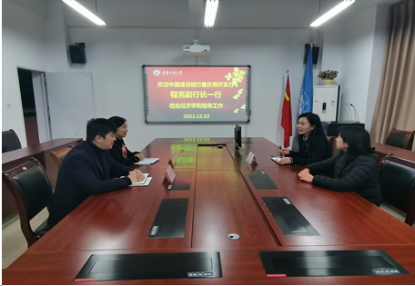 首先,王燕副书记围绕学科专业设置、基本情况、学生培养质量、学生就业需求等方面介绍了学院情况,表达了与中国建设银行重庆南坪支行进行全方位、深层次、多方面的深入交流合作的期待。随后,程亮副行长从行业发展、岗位设置、工作内容等方面分析了人才需求。最后,双方就学生实习实践、科学研究进行了沟通,洽谈合作领域,实现优势互补互利共赢。