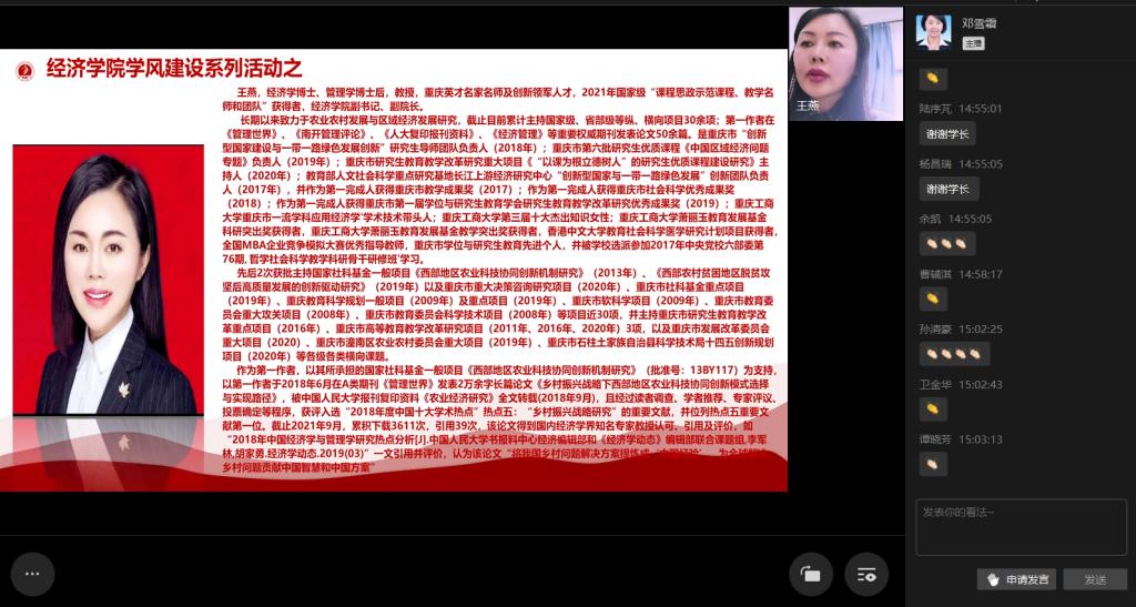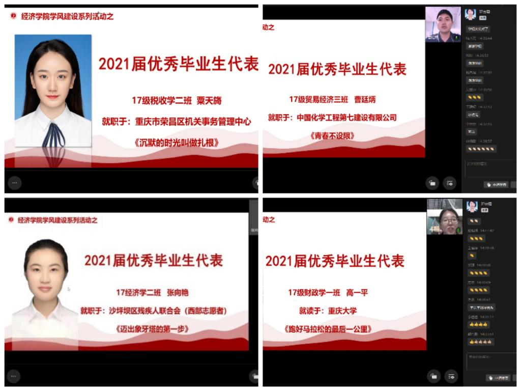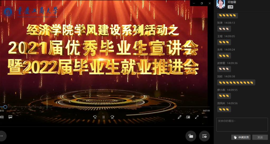 “立德树人,助力就业”,太阳成集团tyc5392021届优秀毕业生宣讲会暨2022届毕业生就业推进会于10月22日在线上成功举行。太阳成集团tyc539分党委书记李自维教授,学院党委副书记、副院长王燕教授,太阳成集团tyc539黄潇副院长,太阳成集团tyc539朱沙副院长、太阳成集团tyc539雷菁组织员、党政办及学团办办公室负责人、系主任、辅导员,2022届毕业生参与了本次会议。