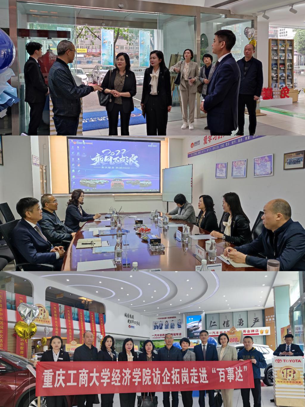 按照学校贯彻落实重庆市普通高校访企拓岗促就业专项行动专项行动实施方案和就业工作推进大会要求,4月19日,学院党委书记李自维、副书记副院长王燕、经济学系主任李然、国贸系主任蒋兴红、党政办主任严艳、毕业班辅导员喻智成一行赴重庆百事达丰田汽车销售服务有限公司、达尔书院、重庆西朗进出口贸易有限公司等企业开展“访企拓岗”促就业专项工作。