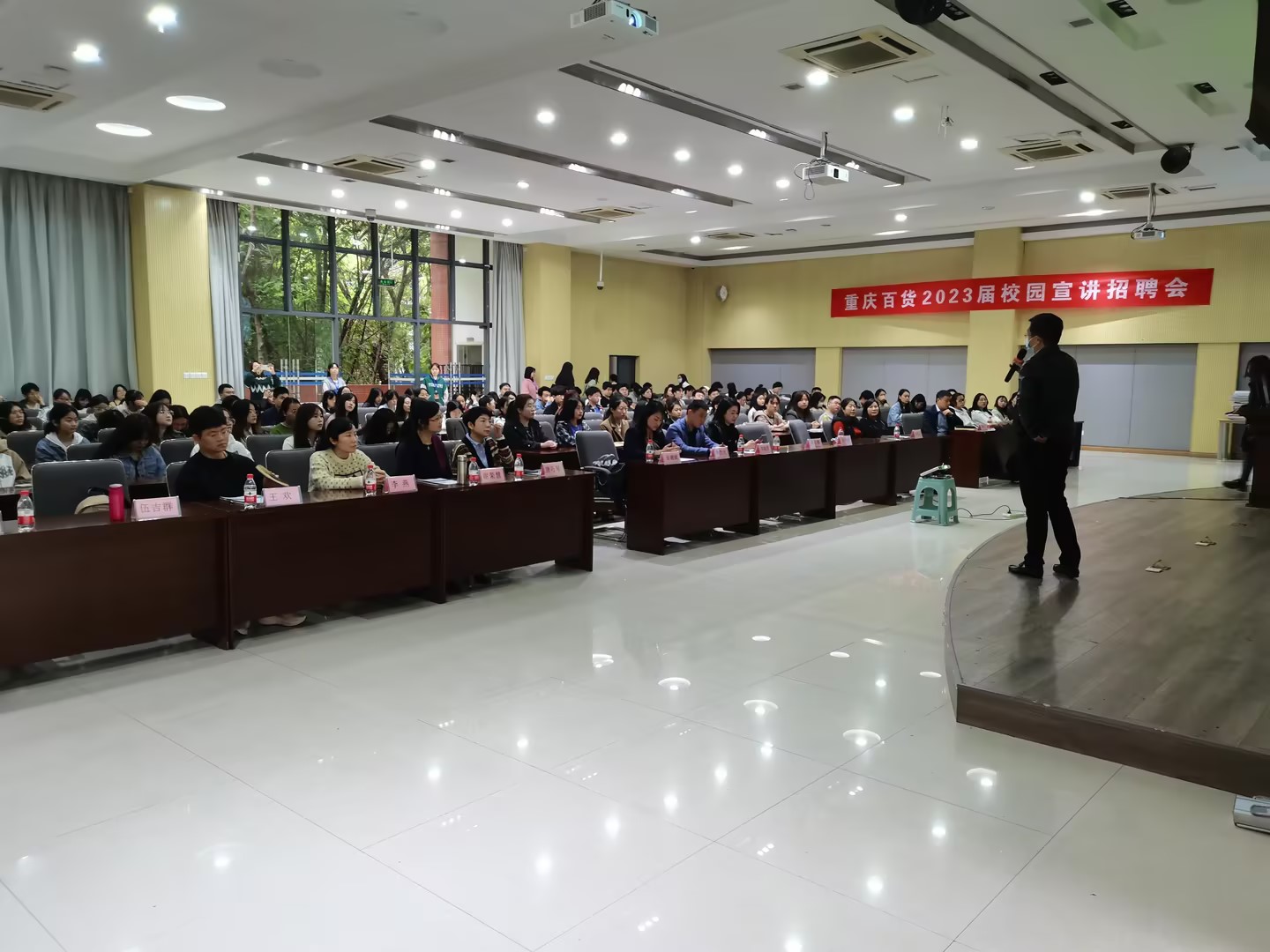 宣讲会现场气氛热烈,秩序井然。重庆百货公司张总和药友制药崔总分别从各自企业的基本情况、职业生涯规划、招聘计划、绩效管理、福利待遇等环节进行分享,为太阳成集团tyc539的学子提供了100余个岗位资源,同时让同学们进一步了解了行业现状和就业形势,增强同学们的就业意识,找到自我实现的价值与目标,并鼓励同学们积极就业。