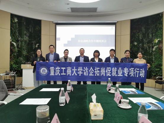 宋瑛院长一行参观了重产集团数苑展厅、家庭服务业实训中心、博士后科研工作站,深入了解“数治就业”系统和“渝职聘”平台等应用建设。座谈会上,宋瑛院长介绍了学院发展情况、人才培养方案、师资队伍建设等,双方围绕岗位人才需求、企业用工保障、科研成果转化、深化院企合作等进行了深入交流研讨。
