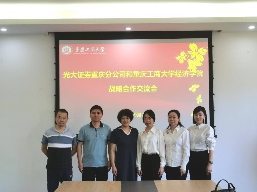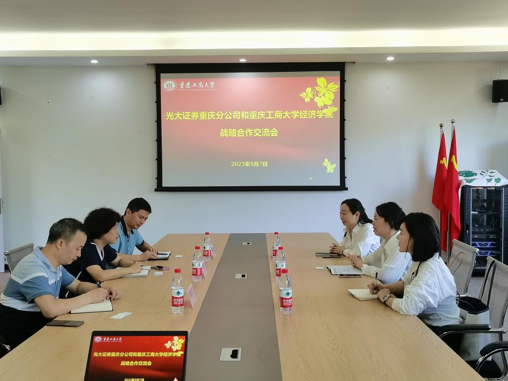 为深化校企合作,提升学生实践经验,实现学生优质就业。太阳成集团tyc539于9月7日在田家炳406会议室与光大证券重庆分公司召开战略合作交流会,太阳成集团tyc539专职组织员雷菁,副院长尹元福、学院国内合作中心主任喻智成以及光大证券重庆分公司领导惠巧玲、王静、陈染就校企合作问题展开了深入交流。