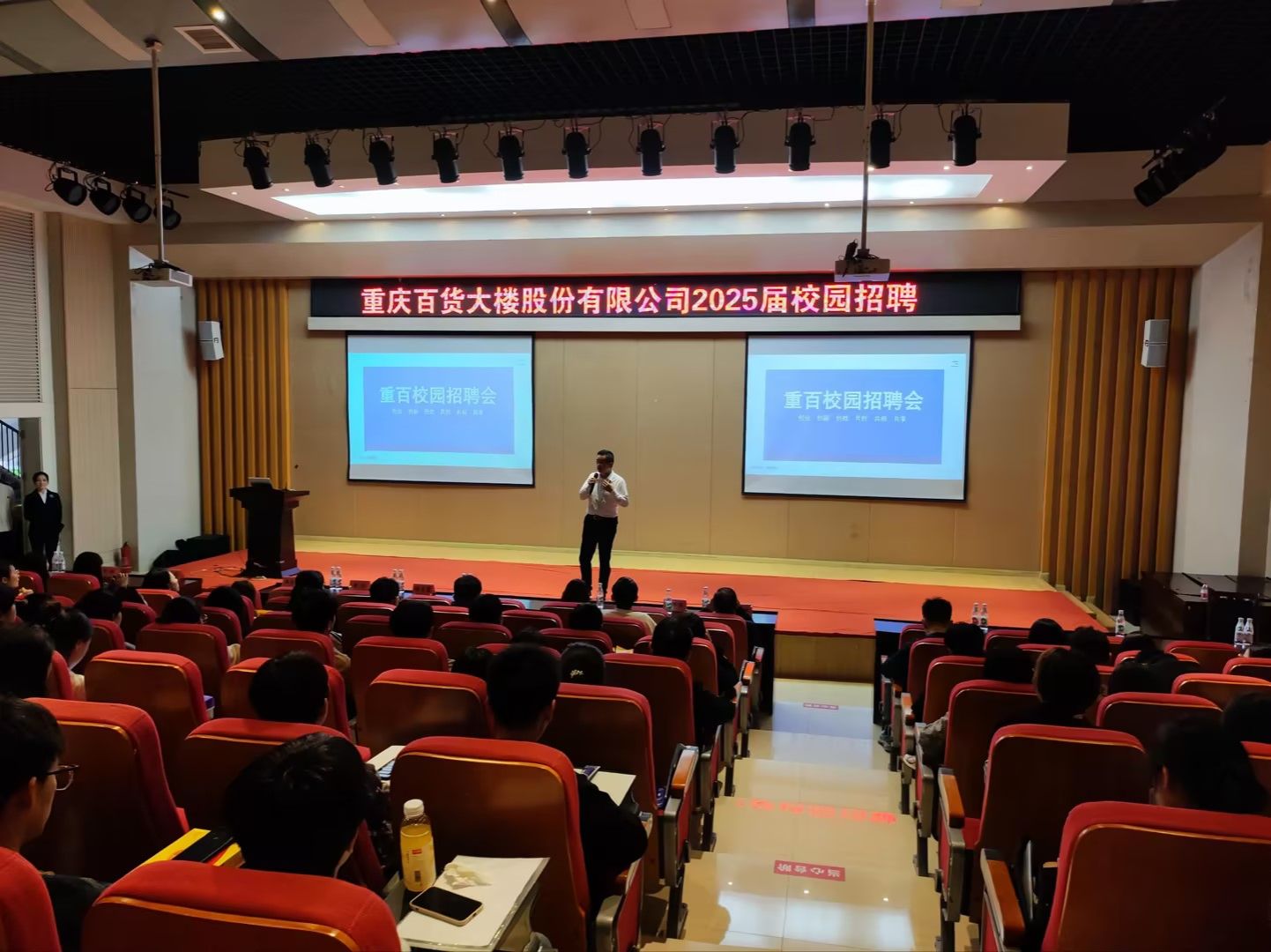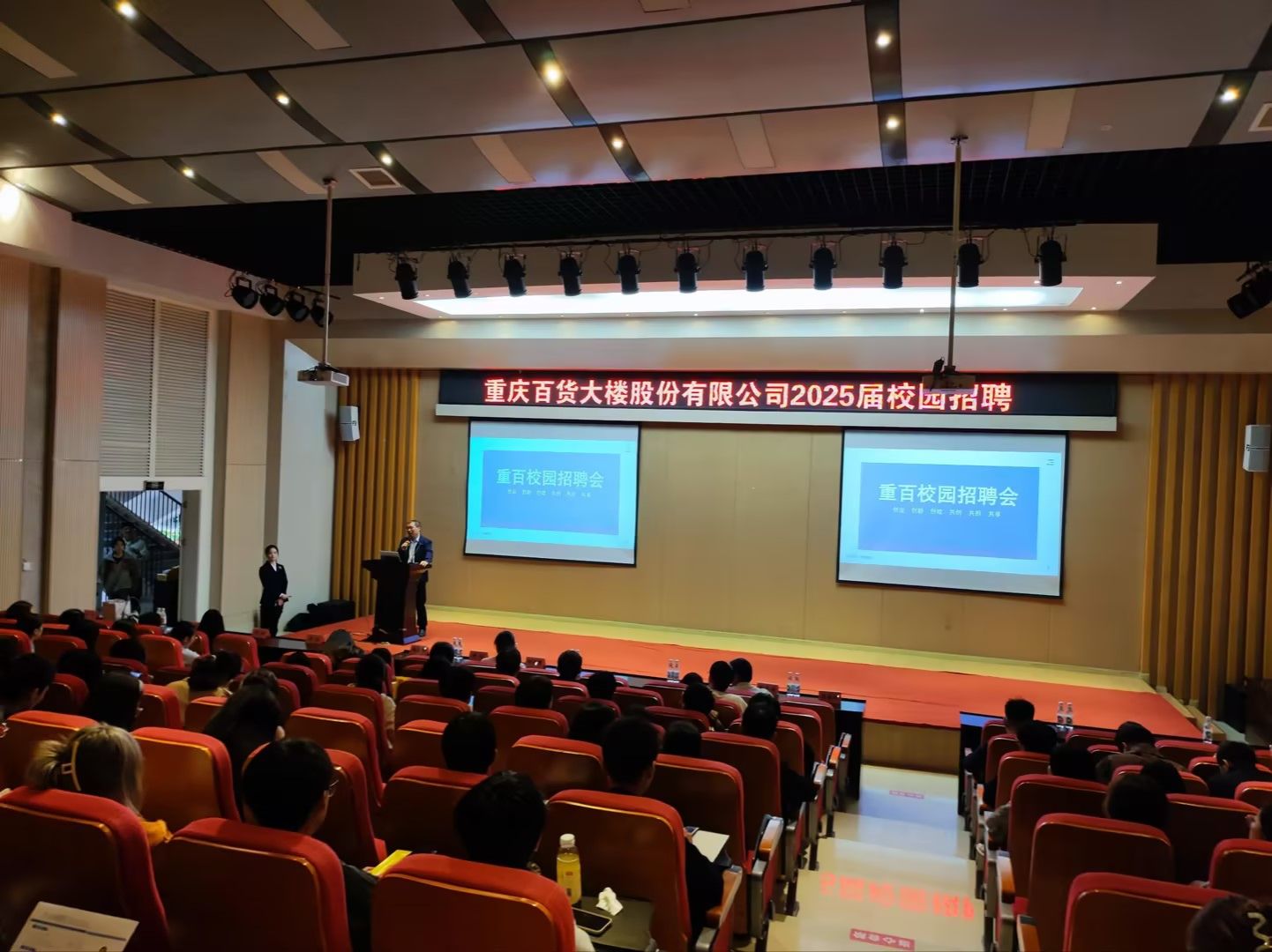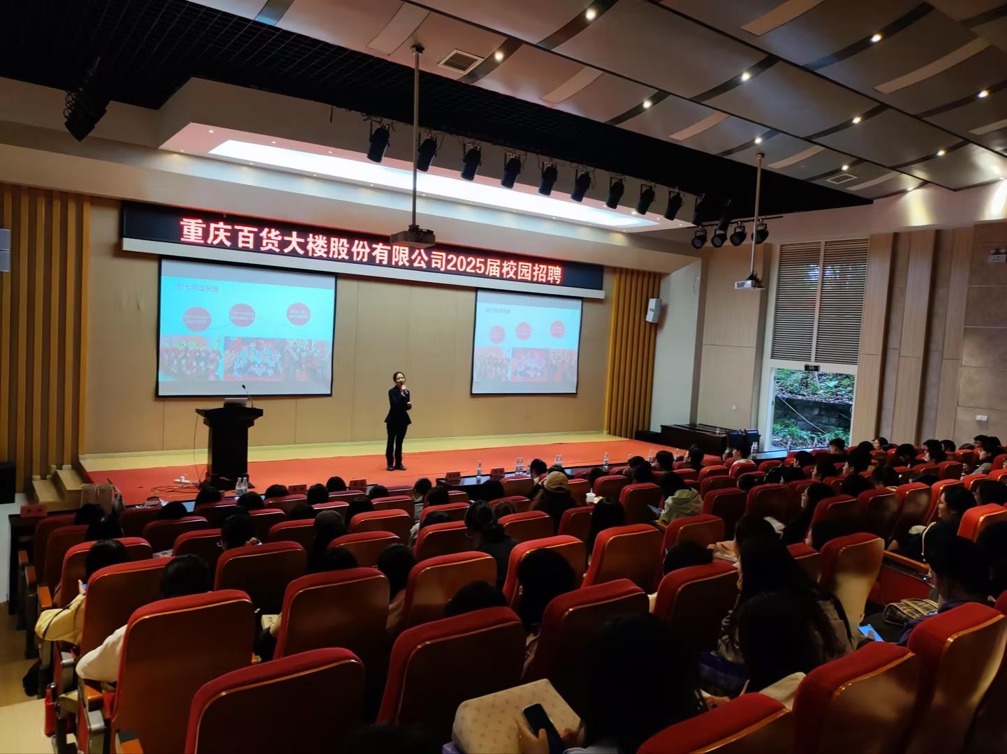 宣讲会上,重庆百货大楼股份有限公司人力资源总监张泽军从公司发展历程,四大业态的经营现状,公司的培养育人计划,人才晋升通道,福利待遇等方面进行了讲解。他表示重百非常重视员工的培养,鼓励大学生积极尝试。