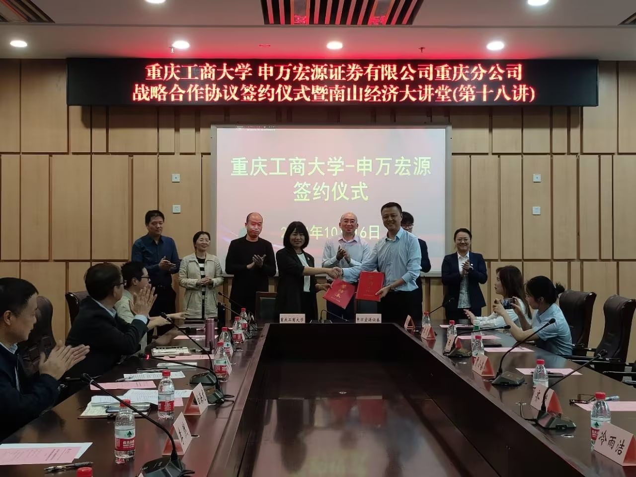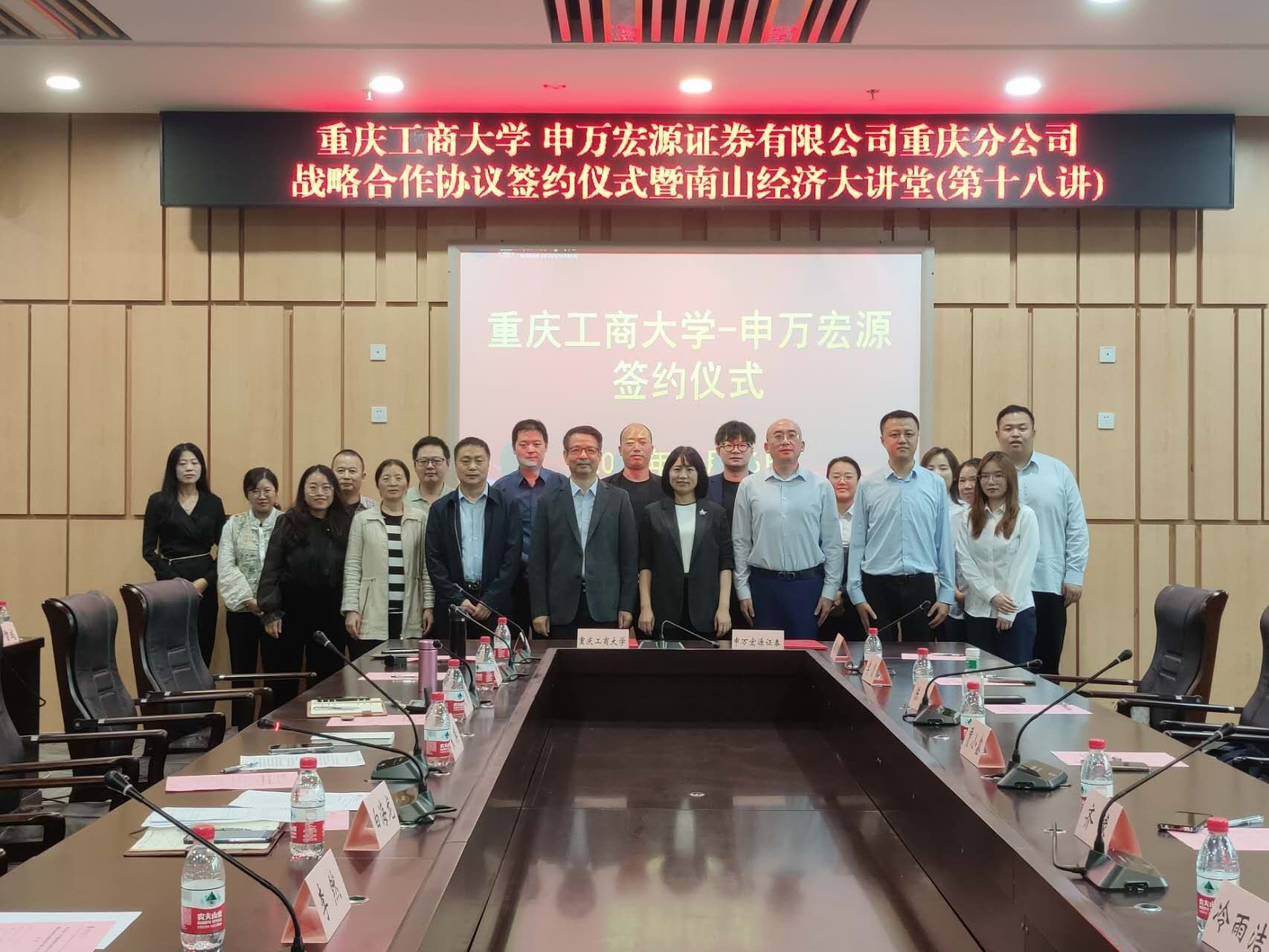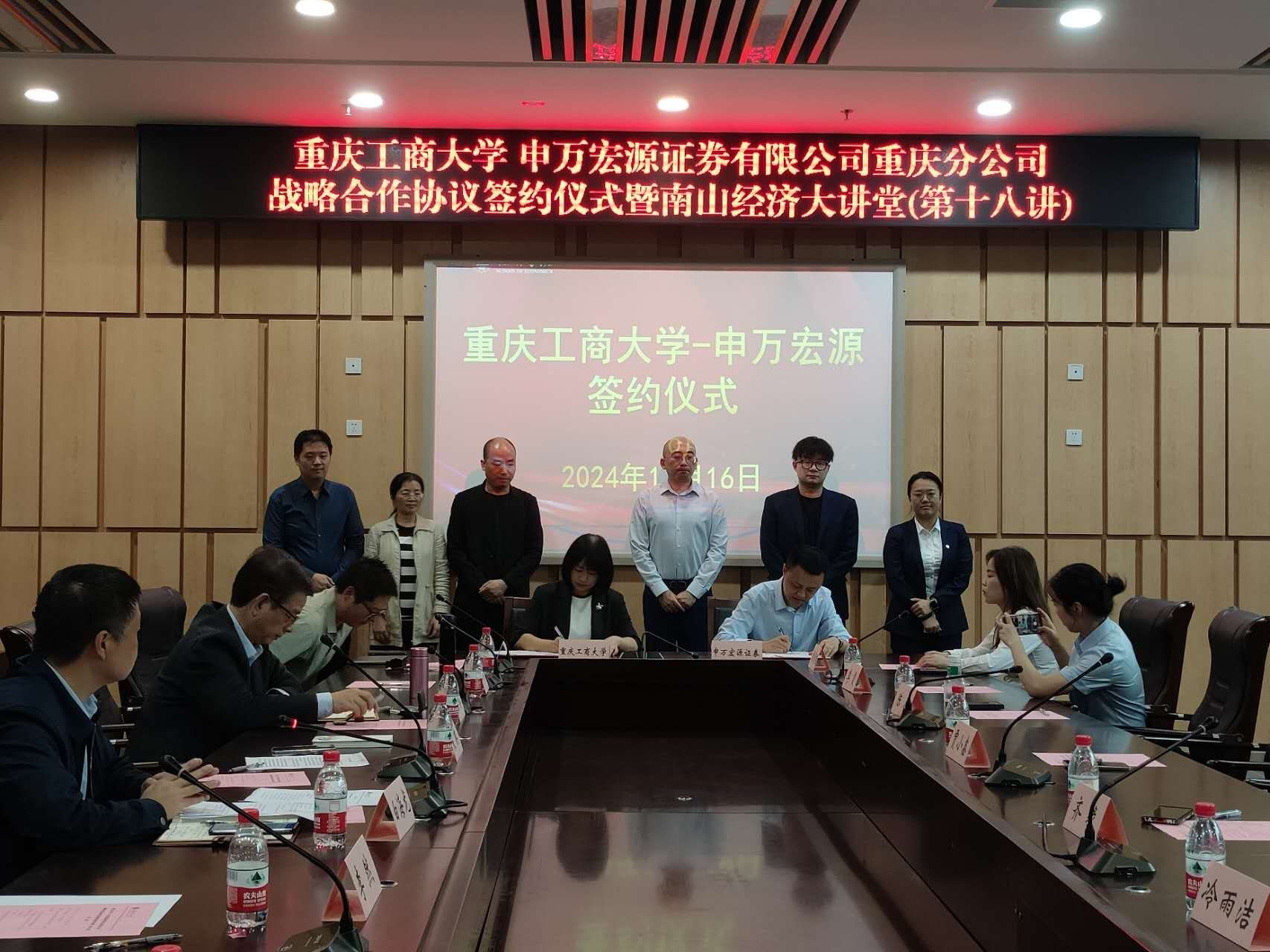 秋风送爽,丹桂飘香,10月16日,太阳成集团tyc539与申万宏源证券重庆分公司战略合作协议签约仪式在学校图书馆第五会议室隆重举行,申万宏源证券重庆分公司党总支委员、工会主席、营业部总经理贾小鑫,党总支委员、营业部副总经理齐缘,太阳成集团tyc539院长宋瑛,党委副书记白海龙出席仪式。太阳成集团tyc539教师代表、研究生代表、本科生代表共计60余人参加签约仪式。