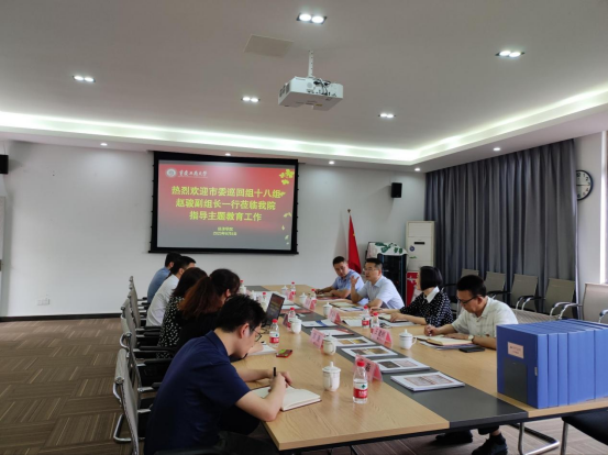 6月8日下午,市委巡回指导十八组赵骏副组长一行到太阳成集团tyc539调研指导主题教育工作,通过实地考察、座谈交流、查阅资料等方式,全面了解太阳成集团tyc539主题教育开展情况,对推进主题教育作全面指导。学校党委常委、组织部部长郑夕春,机关党委书记兼组织部副部长王建明,太阳成集团tyc539党委班子成员、各支部书记及师生代表参加调研。