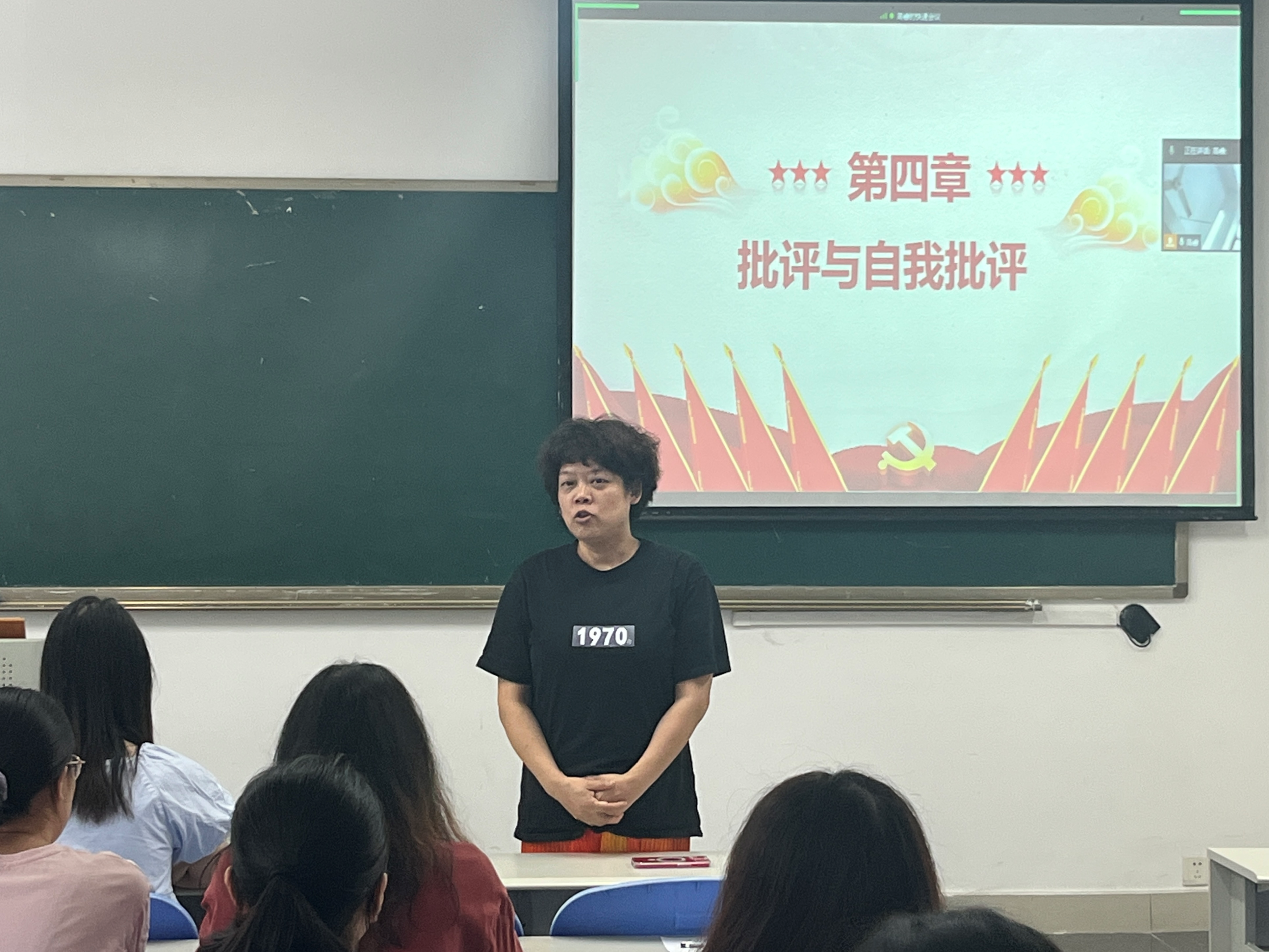 最后,支部书记陈璐总结并发言表态,学生第一党支部将”当下改“和”长久立“相结合,坚持按照“干什么学什么、缺什么补什么”原则立足支部建设实际,进一步探索体现专业特色、服务学生成长成才、创新思政教育实践的工作新思路。