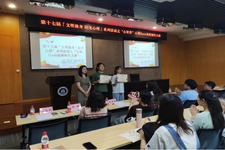 最后随着与会人员的掌声,本次大赛落下帷幕。本次心理Flash视频制作大赛的成功举办标志着学院心理健康建设任务的再创新高,提高了同学们的团队协作能力,激发了同学们对心理健康知识的了解兴趣,提升了同学们对心理健康问题的关注度,为学院打造心理育人平台奠定