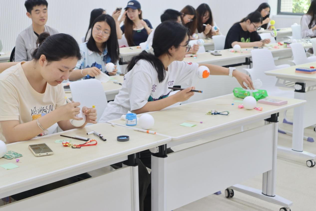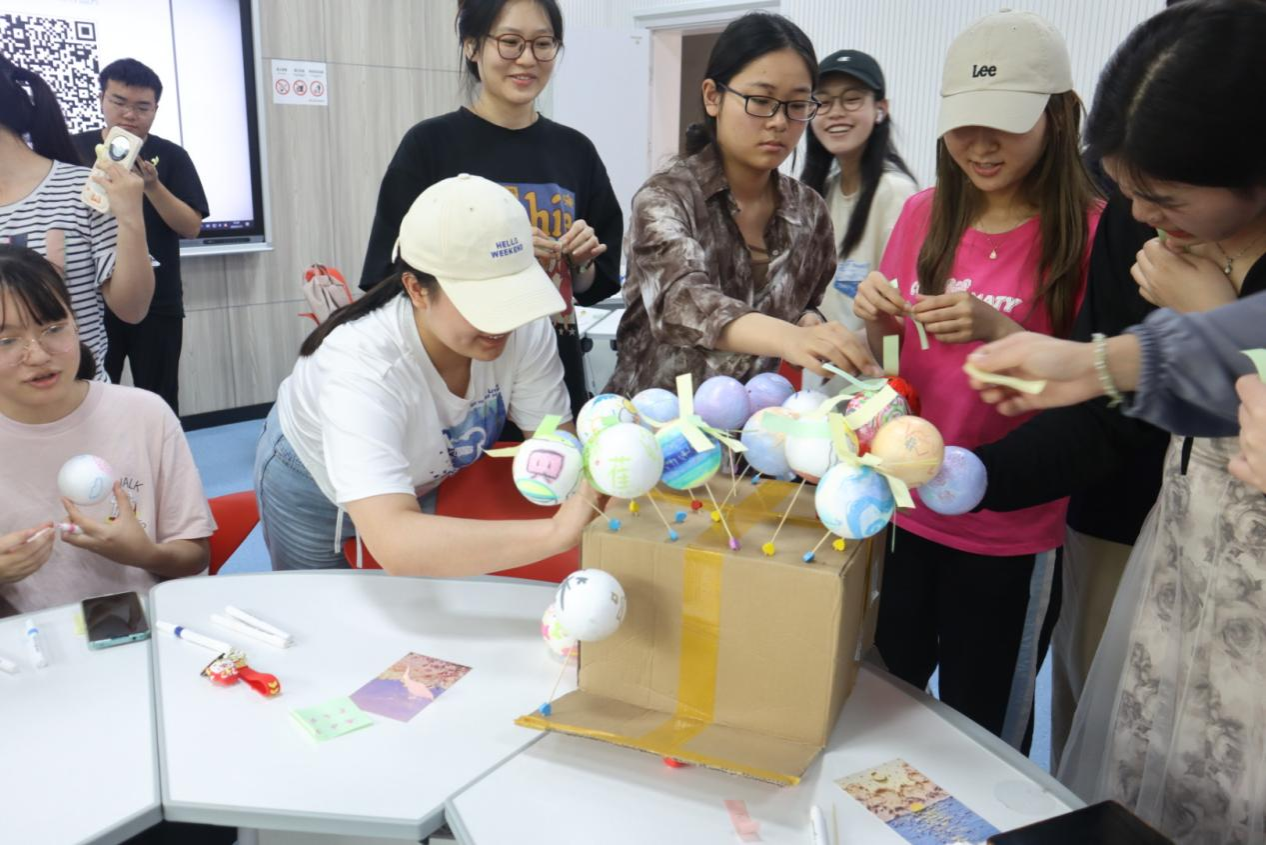 随着一阵轻柔的旋律弥漫在空气中,同学们纷纷在烦恼便签写下自己最近的烦恼,并粘贴在情绪垃圾展板上。在主持人的引领下,同学们依次有序互换烦恼便签,根据交换到的便签信息依托彩色颜料在泡沫球上大胆发挥创意绘制丰富多彩的魔法星球。最后,同学们写下安慰便签并将其投放在心情盲盒中,同时抽取安慰便签,收获今日好心情。