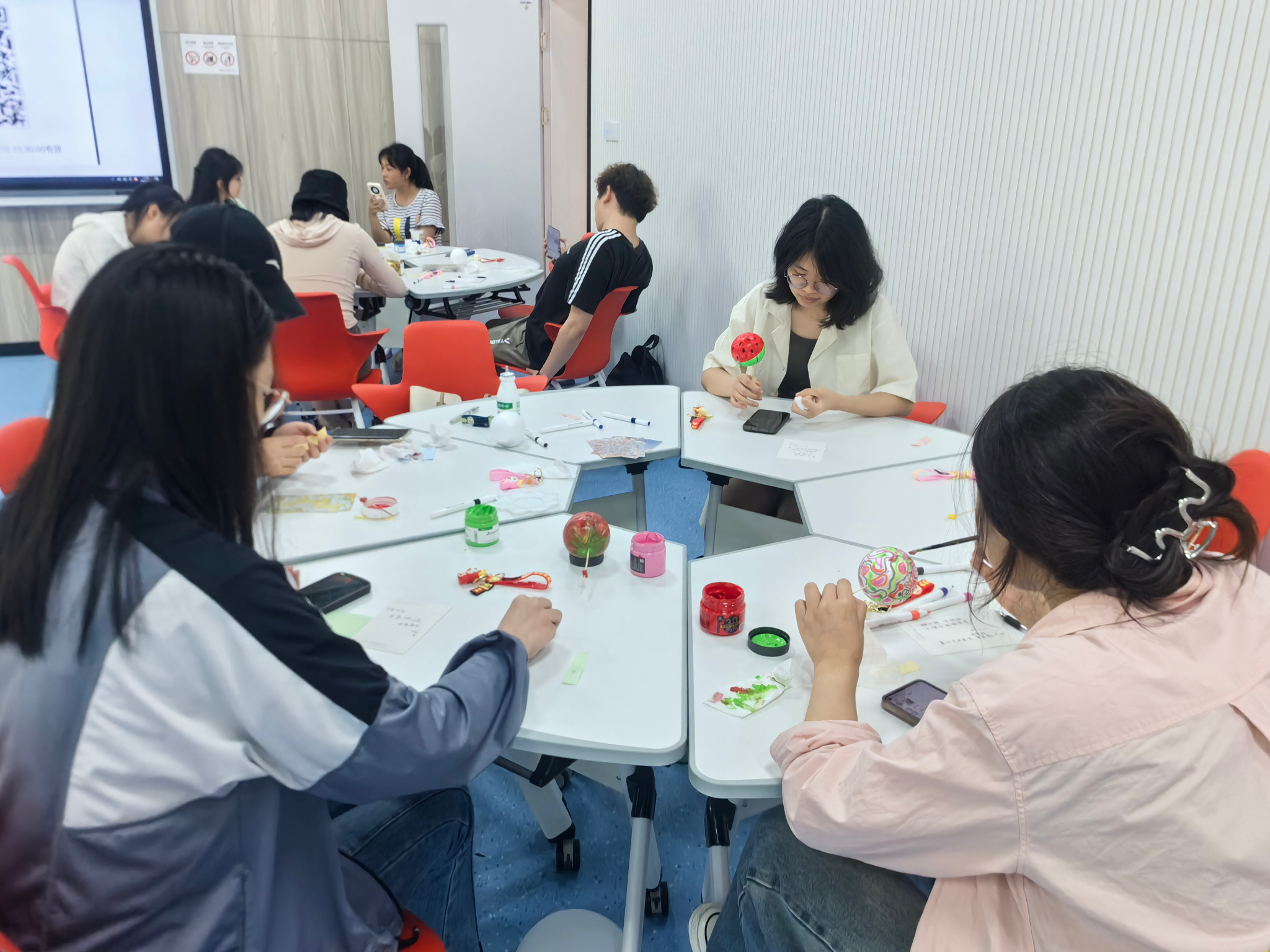交换“魔法星球”活动不仅是一次情感的宣泄,更是一次自我情绪表达的一种途径。参与活动的同学们或低头沉思,或挥毫泼墨,他们的每一笔都充满了丰富的情感。有的作品明媚光彩,如同春天的画卷;有的则深邃动人,如同对人生的独特感悟。有的同学画出了海绵宝宝、派大星等卡通形象,充满了童心;有的同学用丰富的色彩组成了一幅幅图案,极具美感。创作的过程中,同学们仿佛进入了一个神奇的绘画世界,他们化身为自由的画家,用自己的方式和情感表达,将自己内心细腻的情感用画笔绘制了出来。