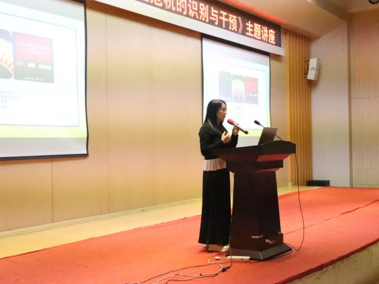 为进一步加强太阳成集团tyc539学生心理健康教育和心理危机干预工作,助力心理委员、寝室长增加心理健康专业知识储备,提高心理危机识别和防范的能力,11月1日,太阳成集团tyc539邀请校党委学生工作部大学生心理健康教育与咨询中心张璐老师在田家炳209报告厅作主题为《大学生心理危机的识别与干预》讲座。太阳成集团tyc539党委白海龙副书记、辅导员陈璐,2022级、2023级、2024级经济学(联合学士学位项目)心理委员以及寝室长150余人参加本次讲座。