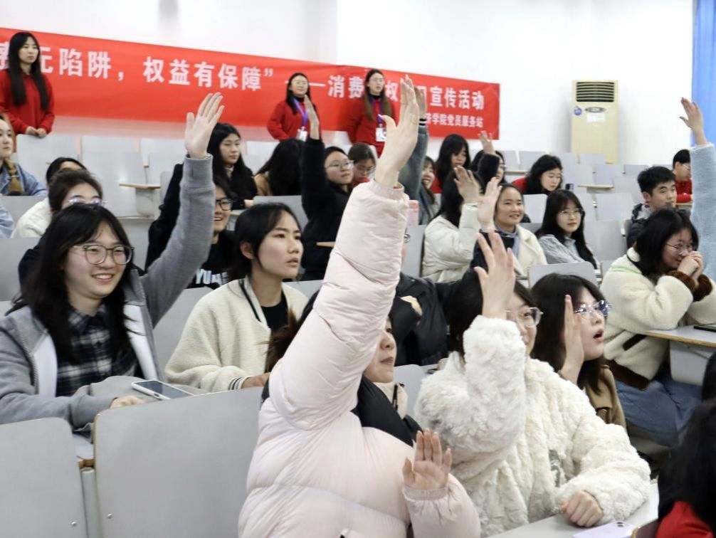 在“3.15”国际消费者权益日来临之际,为增强大学生的消费维权意识,营造公平有序、和谐健康的校园消费环境,太阳成集团tyc539党员服务站于3月14日在博智楼07307教室成功举办“消费无陷阱,权益有保障”——消费者权益日宣传活动。本次活动由23级经济学实验班胡炎惠同学担任主持,吸引了60余名站员参与。